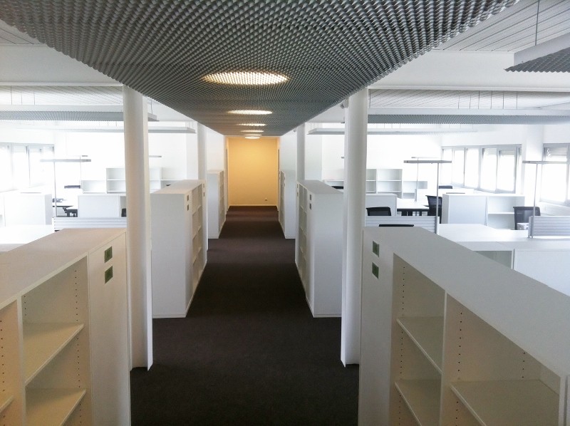 Typologie: Halle administrative de 1’450 m2, 3 Niveaux, 65 places de travail.